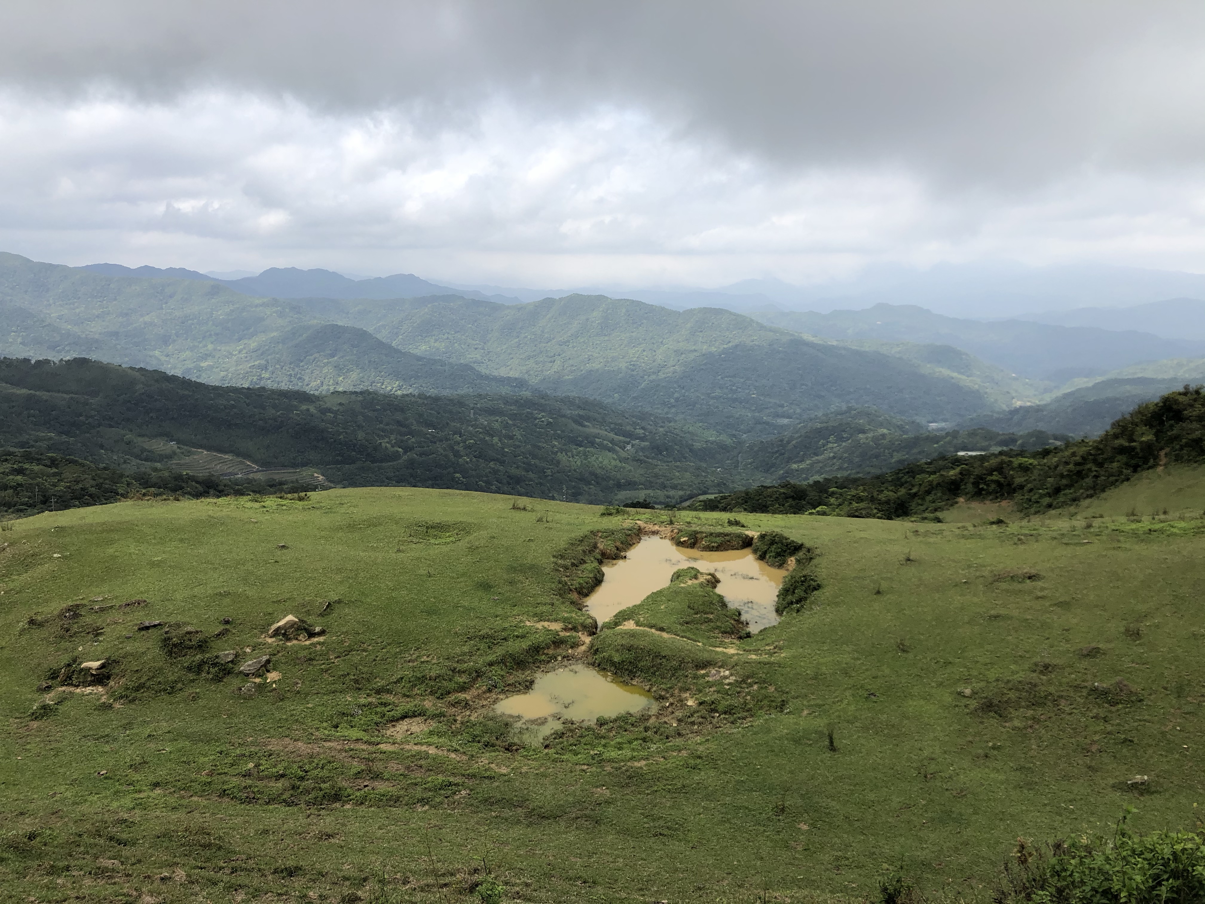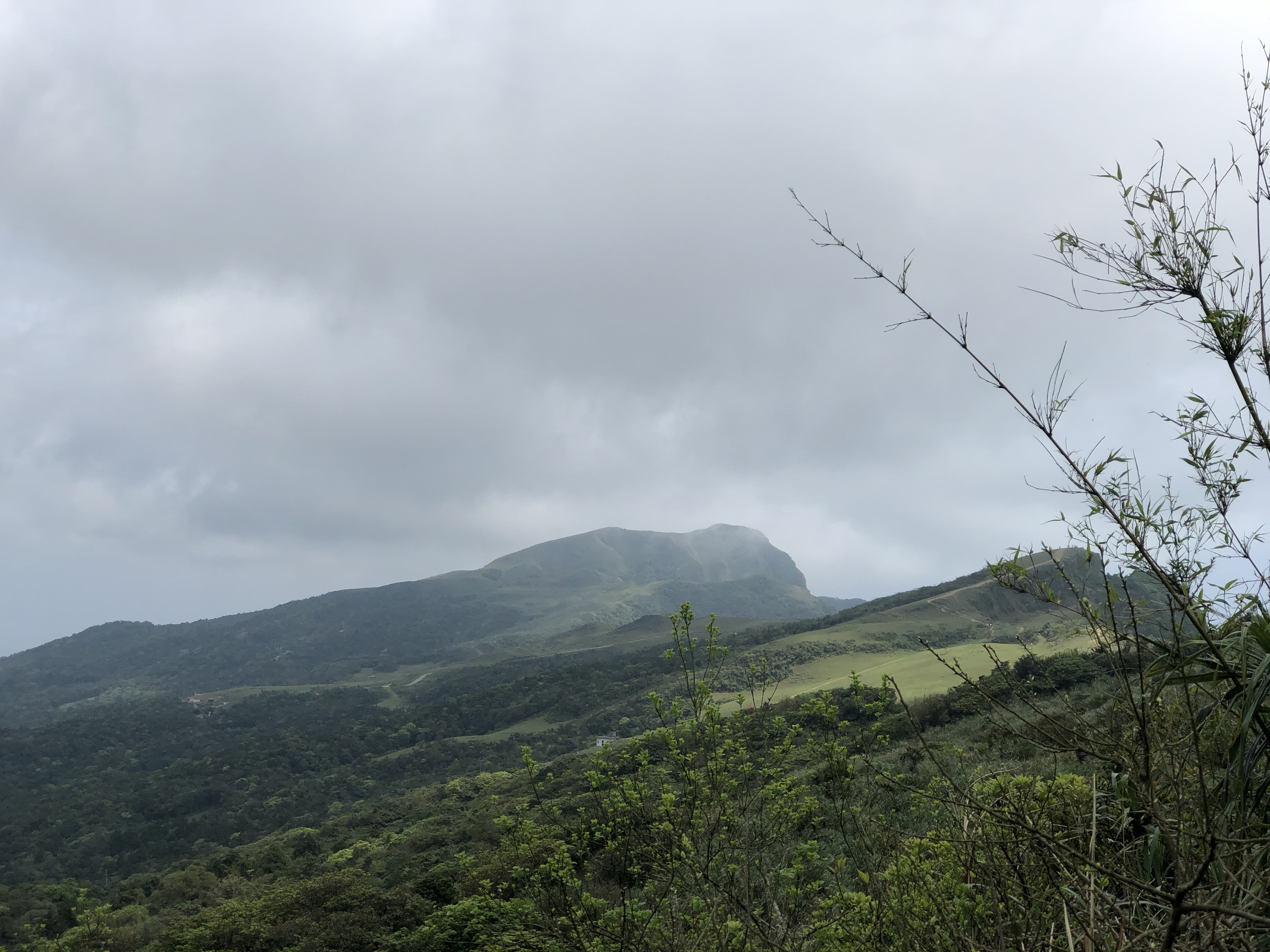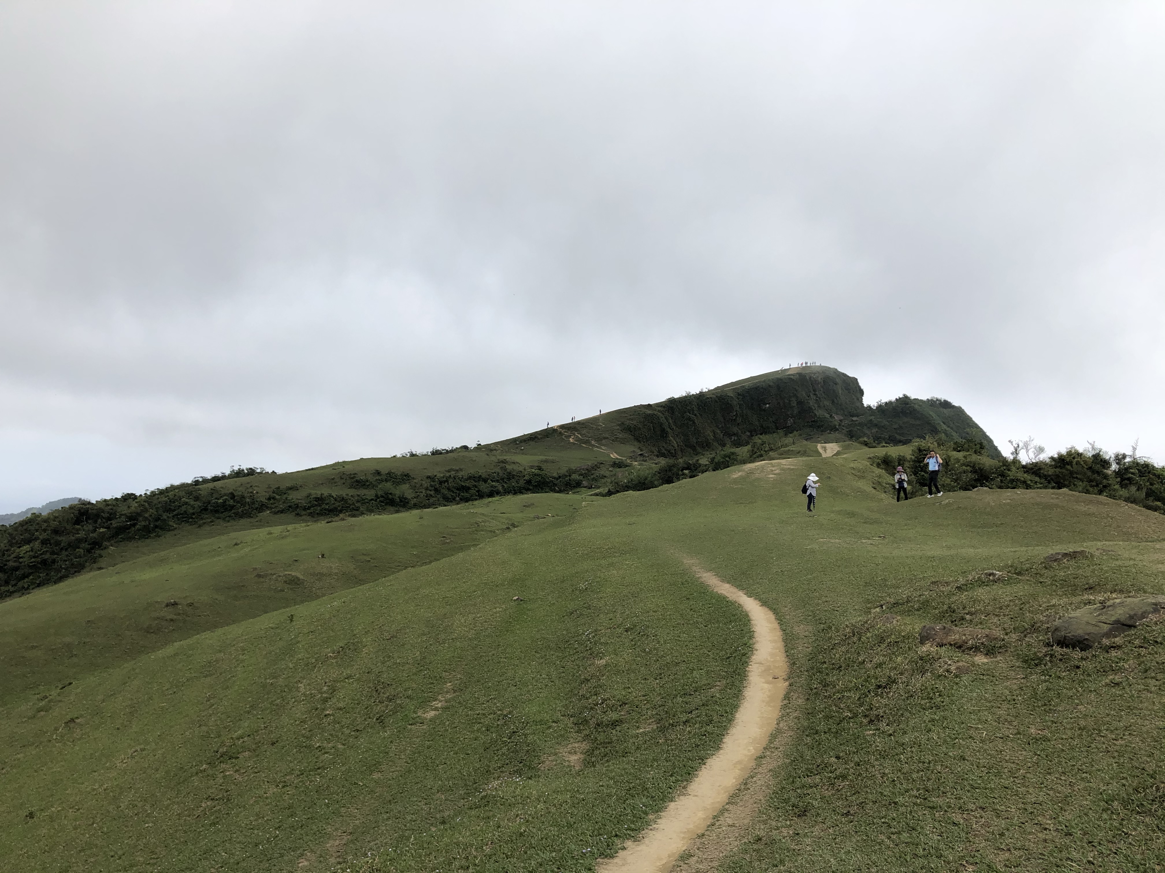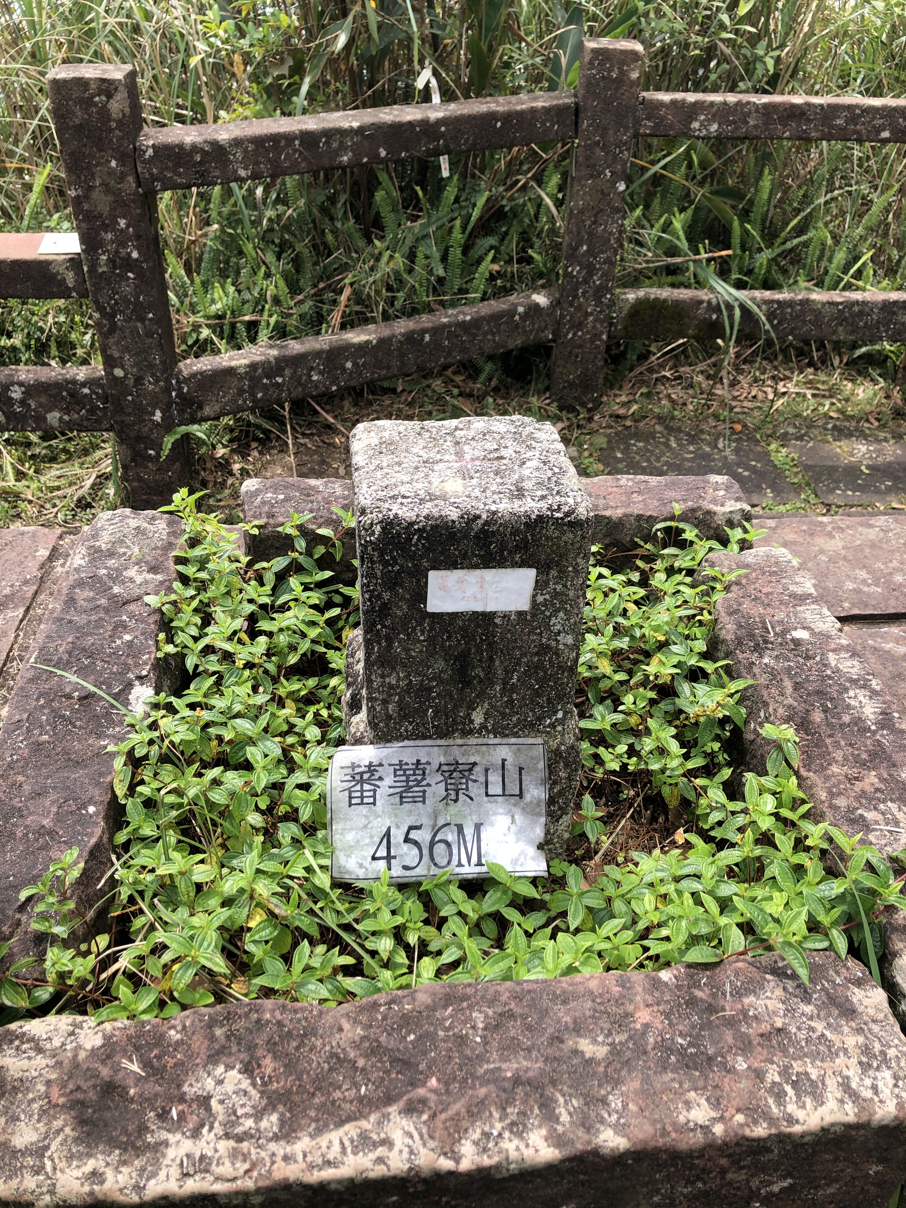 喝完咖啡、吃完鳳梨在桃源谷頂休息將近40分鐘就出發前往大里了,循著這一路的牛糞漸漸就導引出牛群了!然後一路爬上草嶺的灣坑頭山,沒想到還是個二等三角點。