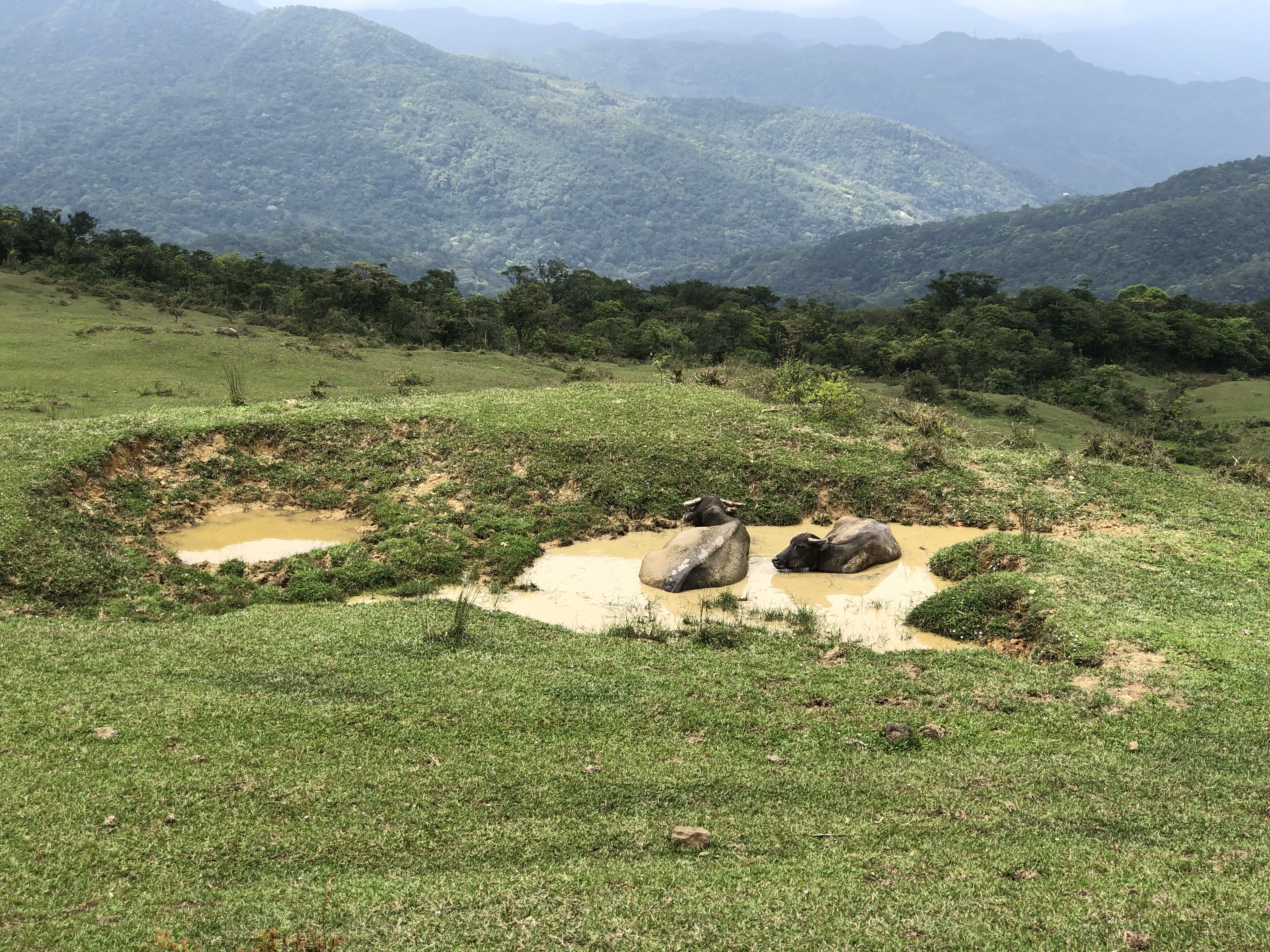一路前行竟然還遇到兩次牛群擋路,很怕這些水牛熱暈了突然的攻擊,一次因為兩旁沒路只能小心穿越,另一次一旁有路就繞路,避而遠之了!