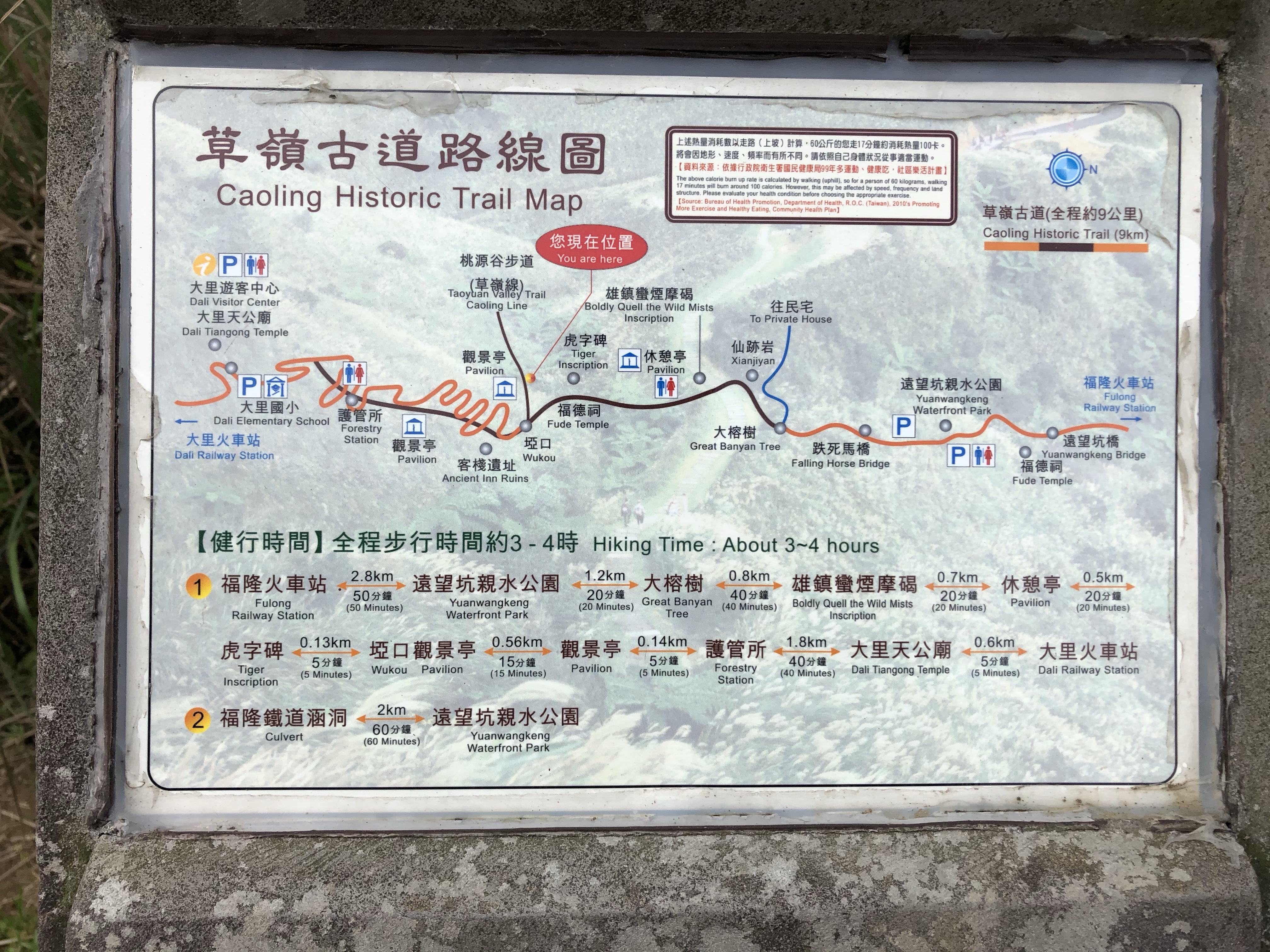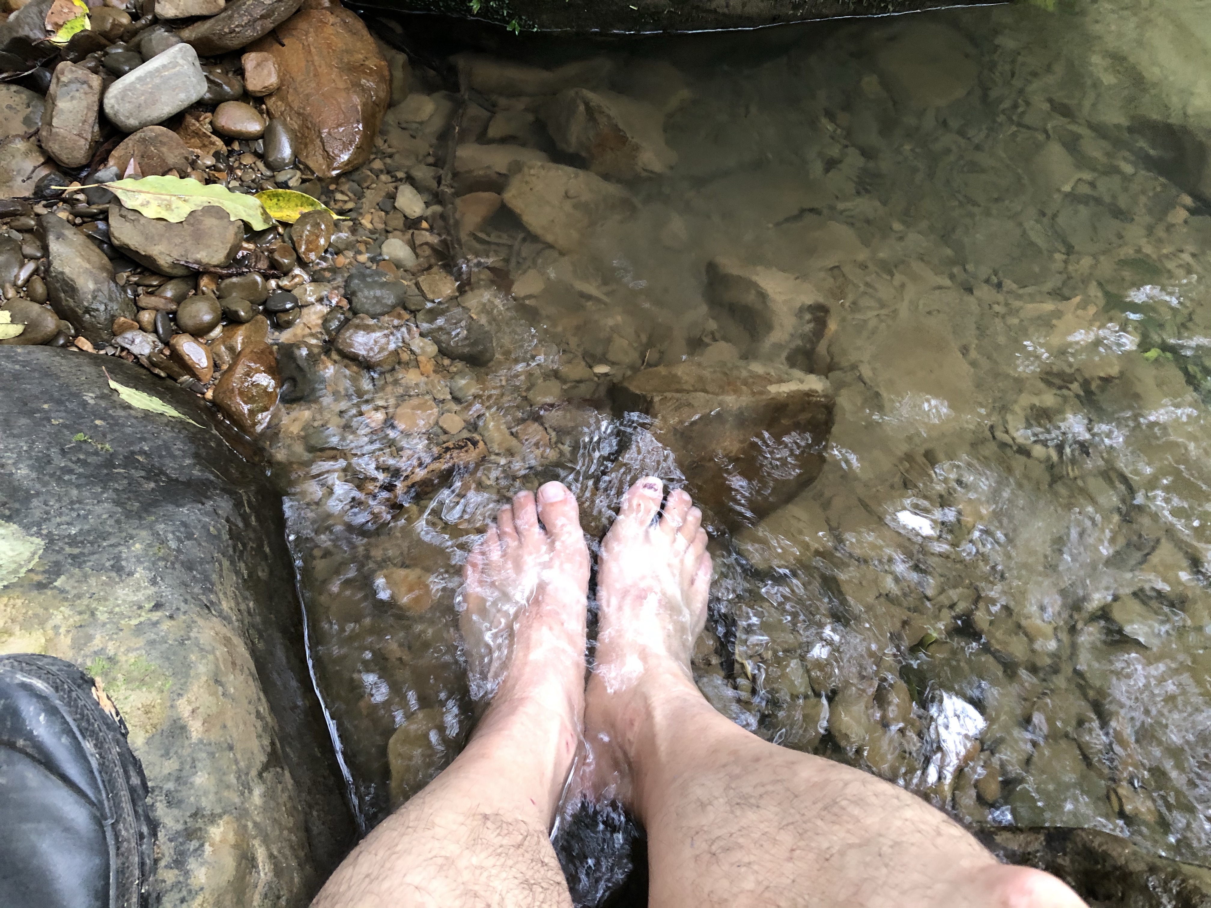 3點左右到了草嶺啞口發現,往大里火車站的路都是柏油路,本來想規劃大溪進大里出的,若從柏油路走下去又太早了,所以就轉往草嶺古道下去到福隆火車站,但沒想到6.9公里的路程只有2.5公里是古道,其他4.4公里還是柏油路。我還在一旁溪水裡泡腳,超涼的!